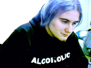 One of Lovecraft's finest Cuthulu stories "A Shadow over Innsmouth," which is about a city of people who worship and interbreed with horredous immortal fish demons. There was a recent film take on it called Dagon. I've not seen it yet, but I am of the opinion that Lovecraft never adapts well to film... there are certainly enough precedents for this belief. I'll probably rent it anyway. The thing that struck me about this story was the concept of the "Innsmouth Look," a set of features connected with having the blood of the deep ones on your family tree. It was supposed to get worse as they aged, making them look more unnatural and fishy, until eventually they mutate into sea monsters. I had a lot of fun playing with these traits in my mind, adn eventually, I decided to modify an image of someone to give them the Innsmouth look. Naturally, the task fell to my brother, who makes a really good model for these things. The original image of him (for which he retains copyright) is below. And because I know you're dying to ask, "Miskatonic" is the name of both the fictitious New Hampshire county in which most of Lovecraft's stories take place. In Arkham, the largst town in the county there is also a Miskatonic University, and there is of course, a Miskatonic River.